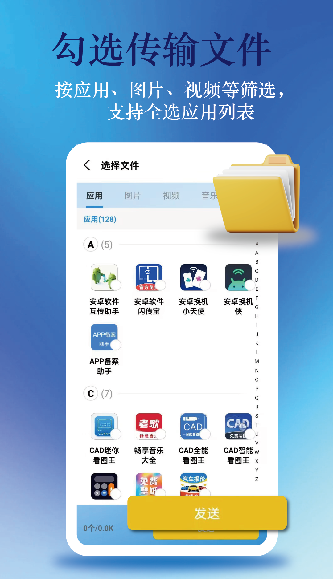 可按需手动勾选需要传输的文件与数据,精准选择,定向发送更灵活。