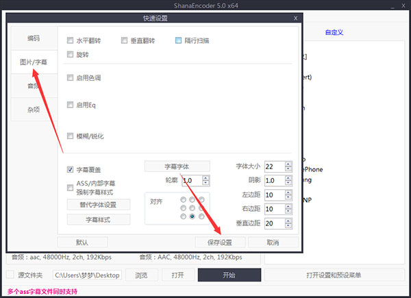 3、支持音频/图片/字幕覆盖,内部字幕样式,裁剪,删除元数据、设置水印等。