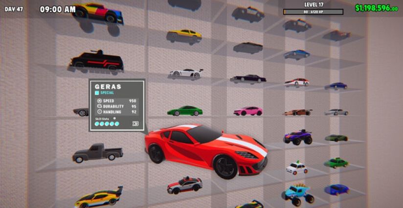 7、升级你的商店以吸引更多顾客!添加新的货架、赛车平台、超级跑车盒和收藏品来获得新顾客并增加收入。自定义你的商店,更换地板和墙壁颜色,用海报装饰等等。