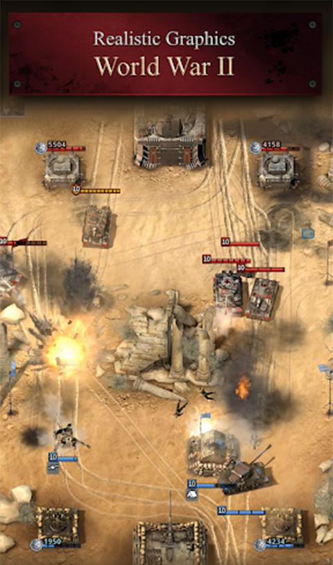 通过合理调配丰富的资源,来招募更多的作战单位和支援单位,以燃烧的斗志和压倒性的兵力瞬间摧毁敌方,十分具有可玩性。还最大程度了还原了各种真实的二战战场,而且游戏里各种逼真的音效以及真实刺激的战斗场景等都将带给玩家们身临其境般的真实体验,玩家更可以选择适合自己战略风格去收集各种单位打造最强部队,并在逼真的战场上与成群的敌人去作战来获得游戏的最终胜利
