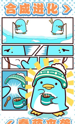 这是一款悠闲的小游戏,可爱的企鹅们将在空寂的冰块上建筑属于自己热闹又可爱的城镇,随着居民的不断增多,可以通过合成获得新的企鹅居民,从而解锁企鹅图鉴。