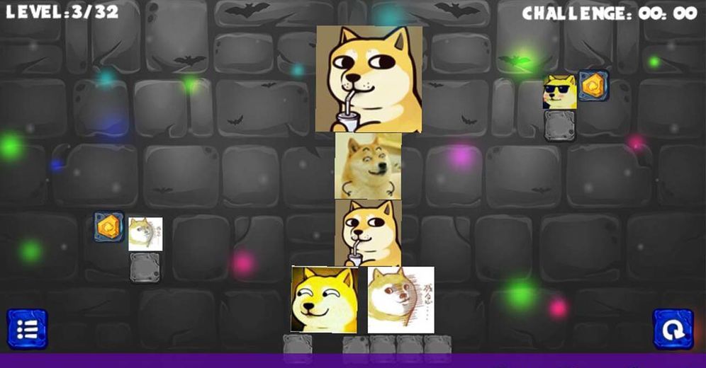 点击有神烦狗图案的方块。会将方块击碎,所有的方块落下就能胜利过关。