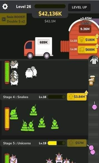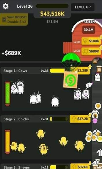 农场工厂安卓版下载是一款有趣的经营类游戏,轻松的放置类玩法,你将经营一家属于自己的农场,去养殖各种各样的动物,扩大自己农场的规模,可以建造围栏,养殖各种动物,收集金币,玩起来很轻松。你准备好管理自己的农场,成为最富有的人吗?赶快来下载体验一下吧!