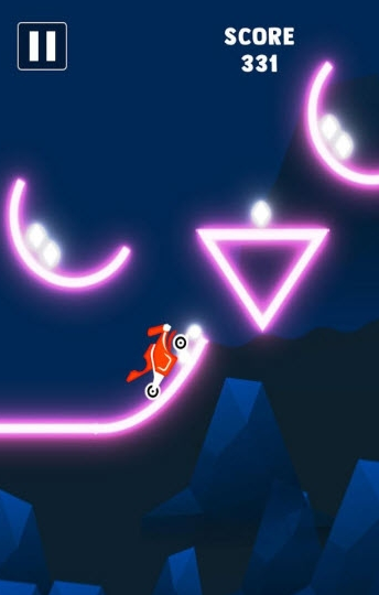 采用绚丽的霓虹效果,玩家驾驶酷炫摩托车展开挑战,还能做出各种特技动作,获得高分和游戏金币。游戏中有很多的关卡,我们要挑战,每一次的挑战都是非常的精心刺激的,因为游戏中又很多的陷阱,这些陷阱都是非常得致命的,如果我们有任何的疏忽就会挑战失败,非常的有挑战性。