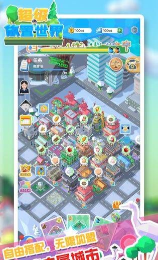 《超级放置世界》是一款以建造城市为主题的休闲经营游戏。游戏采用清新简约的游戏风格,玩家可以自由规划地区,任意指挥建设自己喜欢的建筑。除了建筑外,游戏还有商业设施帮助玩家赚取财富。游戏玩法简单有趣,包括放置、合成和模拟经营等多种元素,让玩家能够享受到轻松愉快的游戏体验。