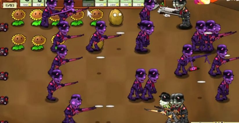 植物与僵尸均被赋予军事化设计,例如豌豆射手化身狙击手,僵尸身着纳粹军服、携带98K步枪,甚至铁桶僵尸升级为坦克形态。