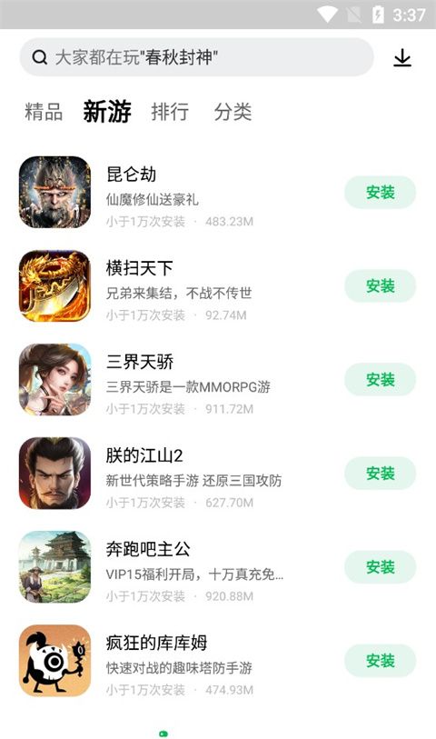 4、点击游戏板块可以直接的看到所有最新上架的游戏;