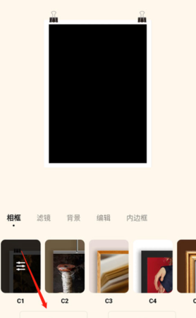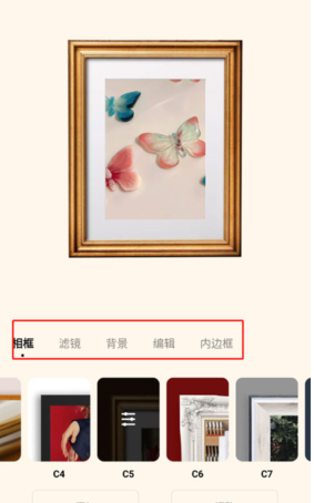 这里有着相框、滤镜、背景、编辑、内边框让你选择使用,编辑完成后即可保存了。