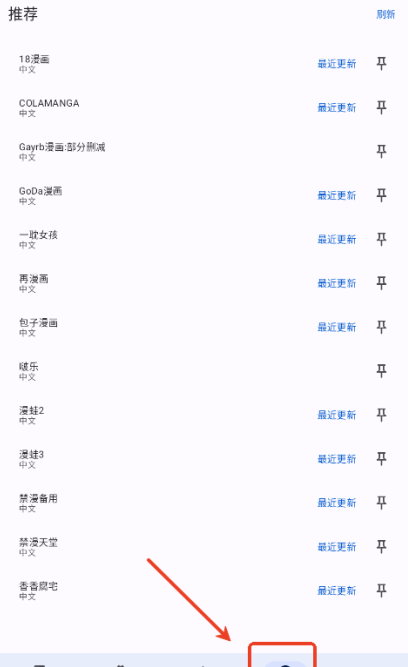 2、也可以在推荐内通过进入各种漫画源导航内查看热门漫画。