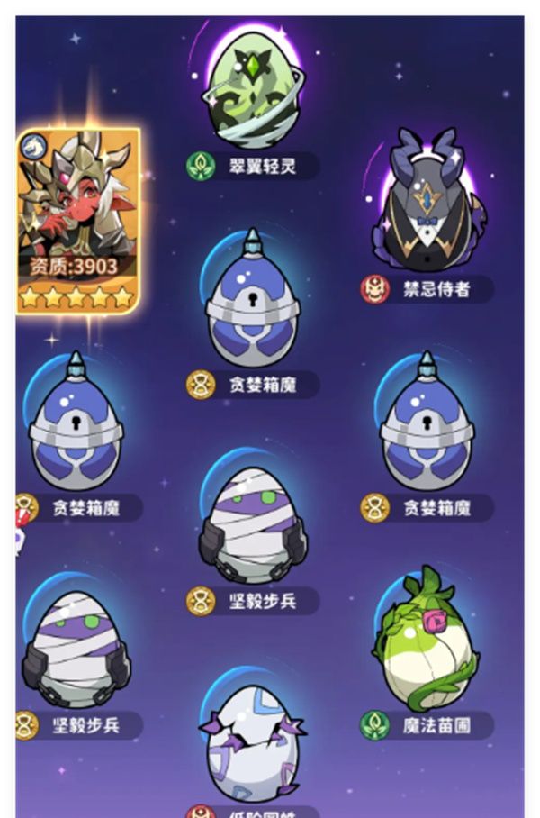 2、【收复失散的魔物】在你苏醒之后,魔物们都期待着再次归顺于你的领导!收集散落的魔蛋并孵化,你将获得一只随机属性的魔物,而稀有的闪亮变异魔物只有幸运魔王才有机会获得!