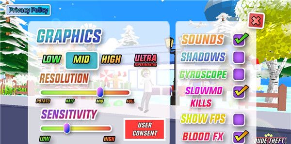 2、点击右下角的设置,可对游戏的图形、敏锐度、慢动作、阴影等进行设置;