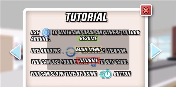 4、初次进入游戏,建议点击右上角暂停,点击教程,先仔细查看如何操作;
