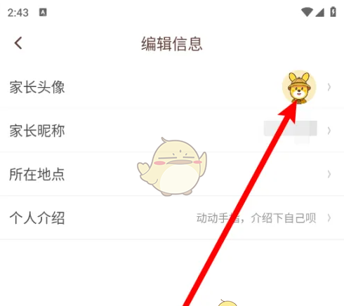 3、进入编辑页面,点击‘家长头像’