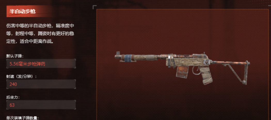 远程武器当然不会少了步枪的身影,步枪是一个非常适合打伏击战的,半自动步枪则是很不错的一把步枪,他的精准度以及在使用时的稳定性都是很不错的,后坐力也并不高,使用起来非常轻松,他的射程可以达到足足250m,对对手的踪迹可以轻松狙击,而且在使用半自动步枪时,玩家们还可以继续搭配红点瞄准镜或者是消音器一类这样可以使他的对局表现更加优秀,迅速将远处的敌人清除产生拦截效果,分配玩家清理远程的敌人增加的瞄准镜则可以大大提高命中率,是一个非常不错的中距离武器,注意在使用这个武器时使用蹲姿可以更好的进行输出。