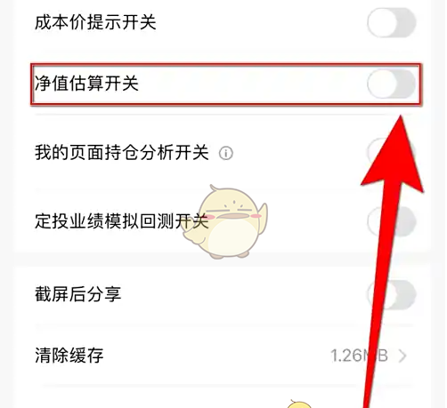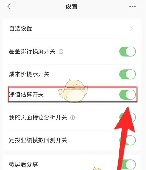 3、设置界面点击《净值估算开关》后面的圆点。