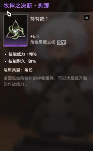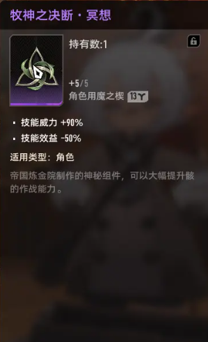 这两个分别就是牧神之决断冥想、牧神之决断刹那,这两个模组到底有什么样的效果呢?先来看一下第1个。冥想的技能威力就可以直接增加90%,而且还可以减少50%的技能效果。刹那更加厉害,可以增加90%的技能威力,而且减的50%技能会更加的耐久。有些玩家可能会觉得疑惑,技能耐久以及减技能效益到底有什么样的效果呢?对于玩普通攻击流的玩家而言,其实真的不需要操心,因为普通攻击流本身就是靠平a去打伤害,而技能就是一个辅助。有时候连技能都不需要怎么放,所以这两个模组对于技能所产生的负面效果不会有任何的影响。