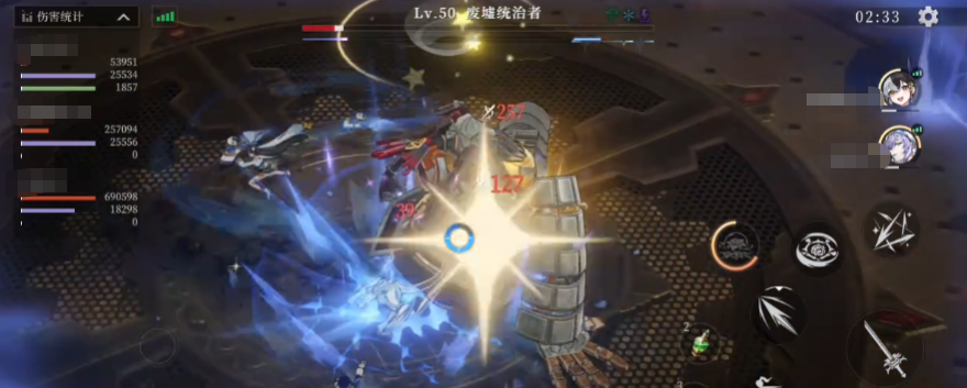 比如说很多的蓄力攻击都是需要长按来进行的,强按之后触发强化,带来的数值会更高一些,而且在攻击范围之内,大家可以通过点触来进行,所以在整体的操作上面简化了之后,大家使用手机还是比较方便的,这样在战斗的共斗系统里面,角色入场的时机就更重要了,因为这里所有的角色在输出的时候都会发现对方的头上,会出现一个数值,一般来说只有能够削刃的角色才是有这个数值的角色,所以提高削刃的话,大家也可以作为一个战斗技巧。