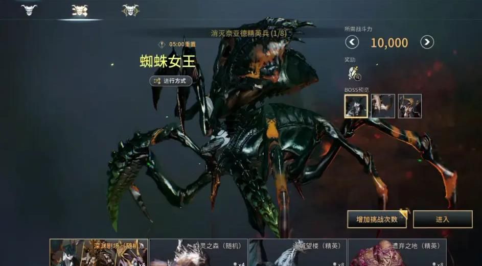 在副本的终极boss中,玩家会遇到名叫蜘蛛女王的boss,这个角色就是一只异形的大蜘蛛,整体的战斗能力是非常强的,玩家可以和这个boss进行一场高难度的对抗,弱点是近战,远程输出的话,会被这boss的触脚所攻击,想要顺利击败这些boss的玩家就需要选择比较强力的职业,假如比较喜欢近距离输出的话,那就可以选择全套或者大剑这样的职业,这种近距离的输出能让玩家给对手带来更多的伤害,可以在战斗的过程中精准输出,但很多玩家个人的能力是不足的,这时候就可以尝试一下远程输出类型的弓箭职业,能够在相对较远的地方展开射击,近战输出和远程的辅助输出搭配,更能歼灭boss。