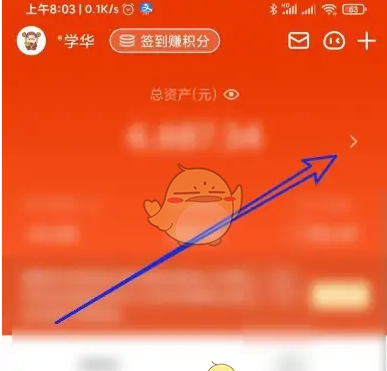 2、然后在打开的我的页面,点击总资产的展开按钮。