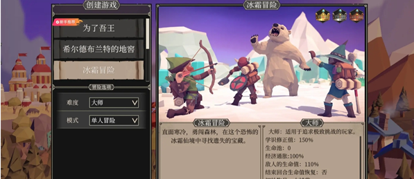 打冰霜这个图,推荐1号位工具人卖艺人,2号位设陷师/猎人,3号位学者。这个图再怎么打不过都可以苟着,地图分4个区域,其实新手村寒冷-1血,海上城镇和最近的城镇区域都是-3血,冰霜之巅区域-5血,但是除了海上城镇其他地方镇子都需要玩家解救,可以先拍营地直接睡觉补状态。后面打不过就苟在城镇里,靠着装备慢慢回血,甚至可以在新手村玩一年把等级练满再出门