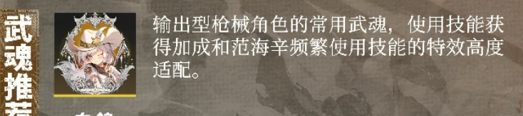 白鸽:是一个比较适合输出型角色使用的武魂,但是更搭配的是枪械类型的角色,如果是跟范海辛一起大诶的话,还可以带来频繁使用技能的次数提升效果,在武魂的特效上面是高度适配范海辛这个角色的,所以经常两者绑定上场,带来的效果是普攻或者是魂技命中敌人后,后续的2秒内再次使普攻或者魂技,在伤害数值上面会增加10%,这样的效果最多的话是可以叠加10次的,也可以搭配奥利维娅之类的角色用。