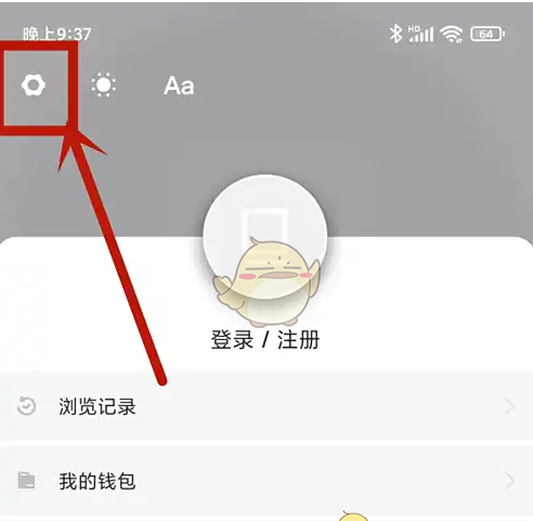 2、点击页面左上角的【设置】图标。