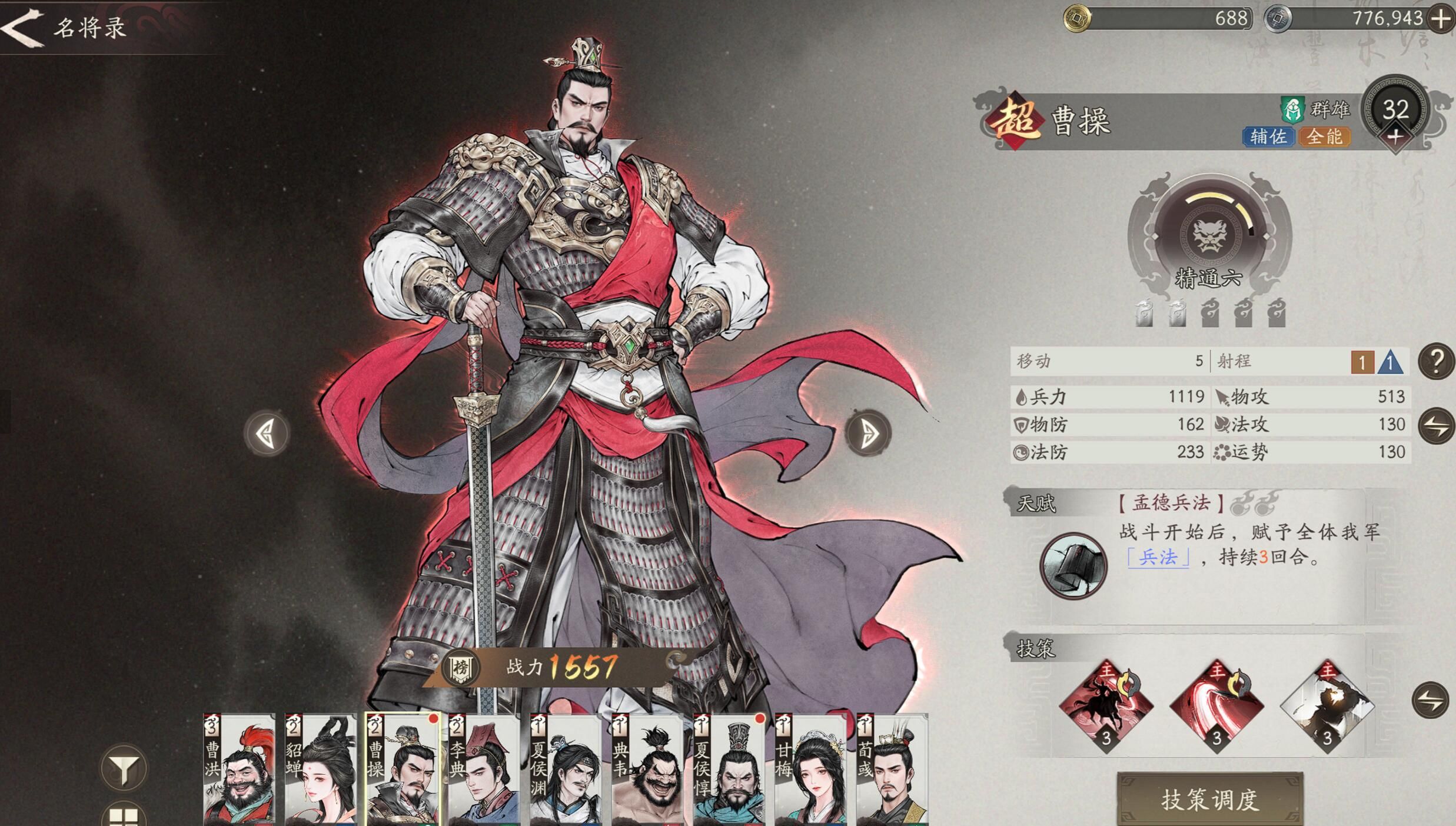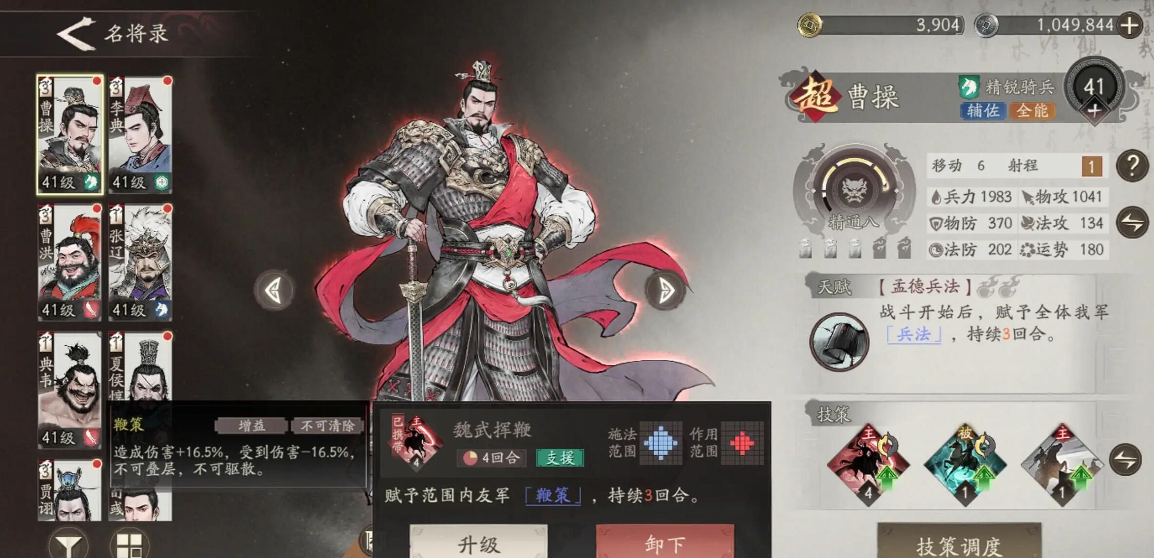 曹操武器选倚天物攻法攻双加成,防具堆血量,每1000血提升5%治疗效果。技能研修把魏武挥鞭升到3级追加20%减伤,短歌行研修后可回战意。除了装备上搭配,玩法上也是有小技巧的,像是主线巨野夺城战要分兵,曹操与张辽守左路村民,夏侯惇卡隘口拦骑兵,李典右侧治疗。过程中需要曹操去点油桶,点燃之后能造成3×3燃烧,燃烧可以烧掉每秒8%最大生命伤害,然后郭嘉起手技能冻住伏兵群。8回合内集火右侧箭塔,别管宝箱直奔BOSS。这个过程如果曹操能有戴青囊书每回合回5%血能省不少事。