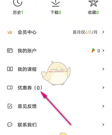 要查看跳跳舞蹈的优惠券,可先打开跳跳舞蹈APP,在软件首页点击底部“我的”按钮,进入个人中心界面后,点击第4个优惠券图标,界面跳转后手指上下拖动,即可查看自己的优惠券。点击相关优惠券,即可进行使用了。