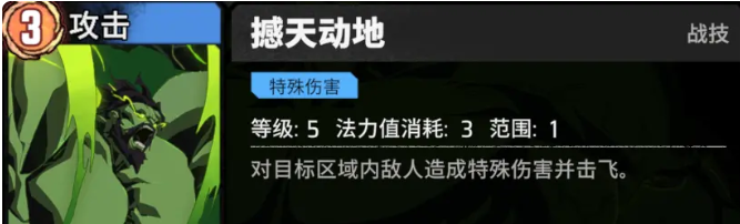 撼天动地这个技能的话,更偏向于控制类的效果,伤害没有那么高,但是达到击飞控制了之后,敌人在动作上面就会受到很大的限制。