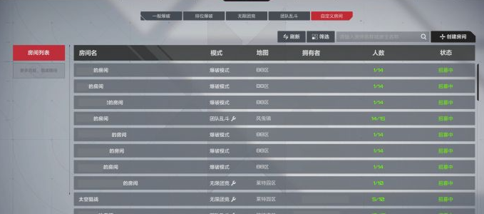 在娱乐大厅每一个星期拿到的奖励都是有限的,例如周一早上6点就会刷新,具体可以拿多少。经验最多是1250,好感度是250,挑战赛分数是400,理想币是500。虽然说是有上限,但是在打了几局之后就可以轻松的拿满,整体来看性价比还是比较不错的。在找房间时就可以直接看房间列表,筛选功能真的比较好用。能选的只看有空位的或者是只找好友开的房间,不要怕走错陌生人的房间。从玩法模式方面来看,也可以挑选有爆破模式,还有团队乱斗模式。