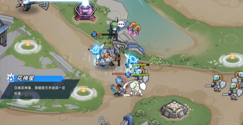 先从芙罗拉的技能体系说起,一技能花神星是她的核心控制手段,释放后召唤出的花神星会悬浮在指定位置,自动锁定范围内的敌人持续造成伤害,更关键的是附带的禁锢效果。这个技能的妙处在于脱手可控,不用芙罗拉一直盯着目标,花神星会自主执行攻击,而且禁锢能精准打断敌人的技能释放,精英怪准备蓄力冲撞时,提前在它行进路线上放个花神星,就能瞬间锁住它的动作,为防线争取反应时间。
