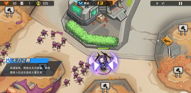 技能核心肯定是千刃之舞,这技能发动的时候特直观,艾薇拉原地转得飞快,周围像裹了层发光的刀刃,最神的是能把附近的怪都吸过来然后一顿乱砍,刚开始的时候总爱等怪堆得密密麻麻再放,后来发现不对,要是等怪都贴到防御塔了再放塔已经掉半血了,后来摸出规律得提前预判,比如看到小地图上一波怪刚刷新正往防线挪,这时候赶紧让艾薇拉站到怪必经的路上放技能,既能把散怪聚起来又能直接清掉大半,防御塔基本不用掉血。