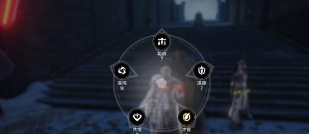 主要是每一回和npc聊天,在选择答案时,其实就已经有了一个悄悄的定义。例如玩家所遇到的是一个小商贩,那不同的选项就可以直接区分出性格路数。如果觉得有一些麻烦,直接一拳选择撂倒那混沌值就可以马上往上跳。而如果想要多说一些,比如用一些阴阳怪气的话聊天,那直接戳穿对方的猫腻,上涨的自然就是才智点。还有就是去帮助老人们去跑腿,也可以有效增加共情点,每一个选项其实都是很明确的。