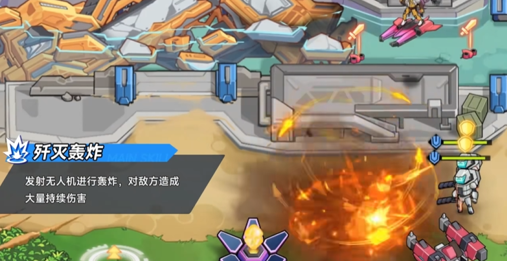 伊莉丝在战斗中的定位是输出,并且她具有极强的机动性。在有些观察中,并不是所有的怪物都从地面上来袭,有很多都是会从空中飞过来的,而此时伊莉丝的技能就能够帮助你轻松面对这样的情况。她的招牌技能歼灭轰炸,可以召唤出无人机对指定的位置进行轰炸,并且伤害极高。如果说你遇到了空袭,那么此时伊莉丝就能够发动该技能,帮助你快速地消灭从天上来犯的敌人,保卫防御塔尽量少掉血。