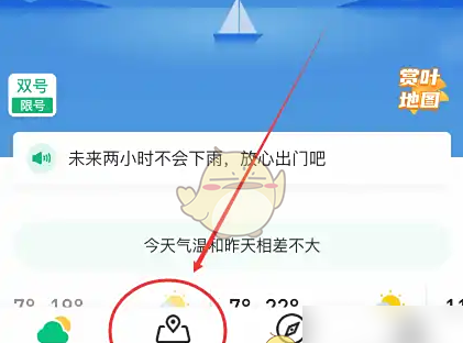 1、打开手机上的彩云天气APP,点击左下方将水图。