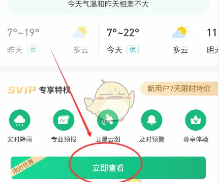 2、进入降水图,点击立即查看,查看更多专业天气信息。