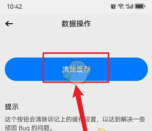 3、进入数据操作界面,点击【清除缓存】。