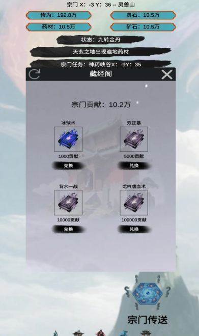 比如,攻打丹道门成功,就可以在宗门兑换丹药,获得丹道门的技能。