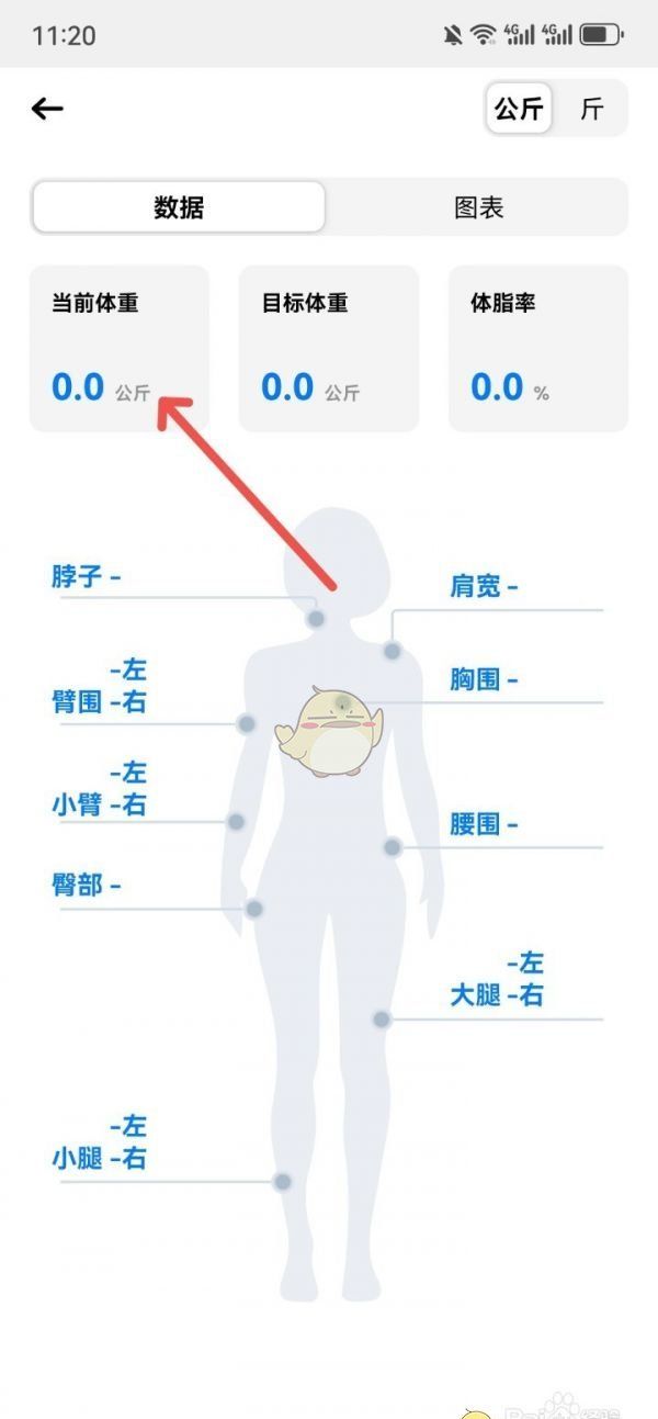 2、进入身体数据页面,点击体重