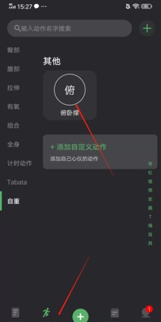1、进入训记app后,首先点击进入下方的“动作”,再在动作页面找到自己设置的自定义动作,点击进入;