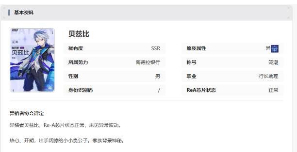 伊瑟贝兹比怎么样?在这一个游戏的世界中,大家就可以看到比较招人喜欢的年轻角色。伊瑟贝兹比这可是明星助理,那到底又有什么样的特点呢?其实这就是一个很热心肠的贵公子家族背景很神秘,但是出手就是阔绰。别看是一个实习生,没有想到起点还是很高的,那么还有什么样的特点呢?