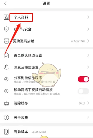 1、打开云集app后,进入设置,点击(个人资料)选项。