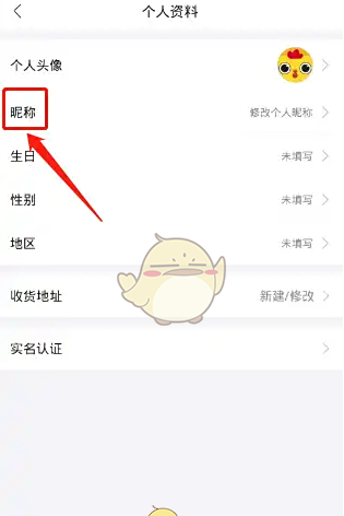 2、进入个人资料,点击(昵称)选项。