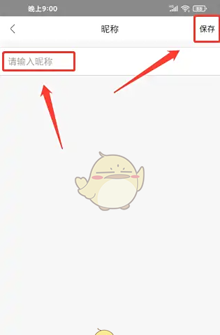 3、进入昵称,输入昵称,点击(保存)选项。