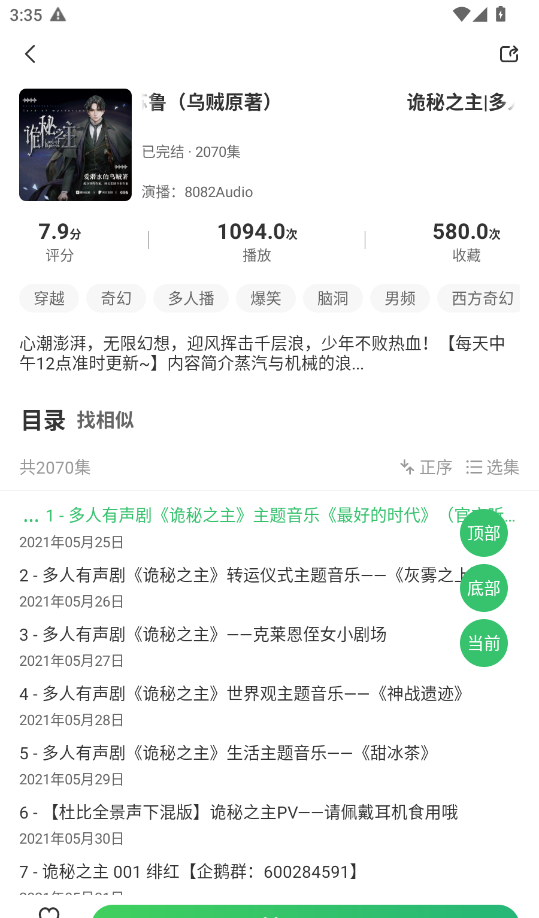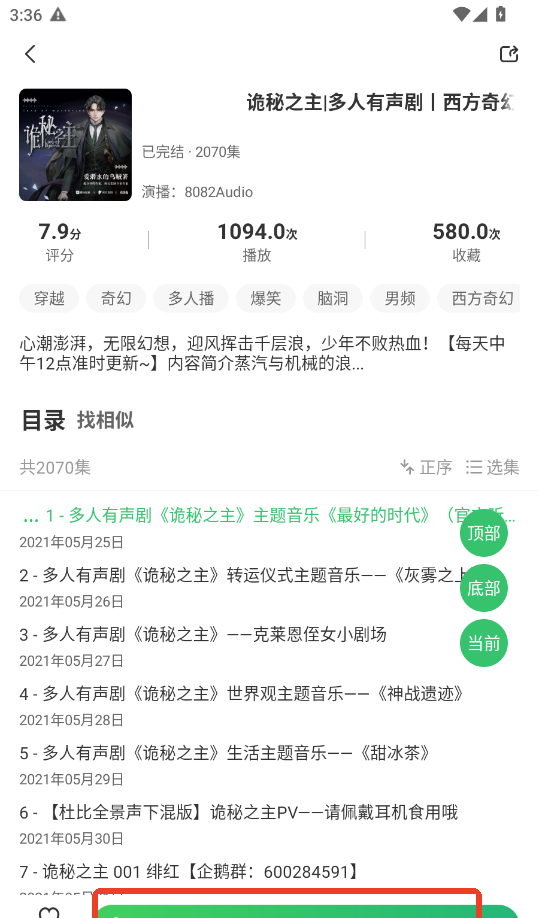 4、点击“播放”按钮或选择某一章节进行收听。