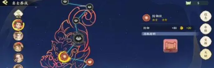 升级策略:每名主力名士的天赋升到相同等级(如先全升 3 级,再升 5 级),避免单独堆高某一名士导致队伍战力不均衡。