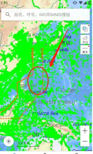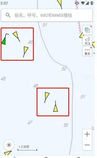 2、放大到一定程度后,在地图上就可以看到当前海域上的船舶了。