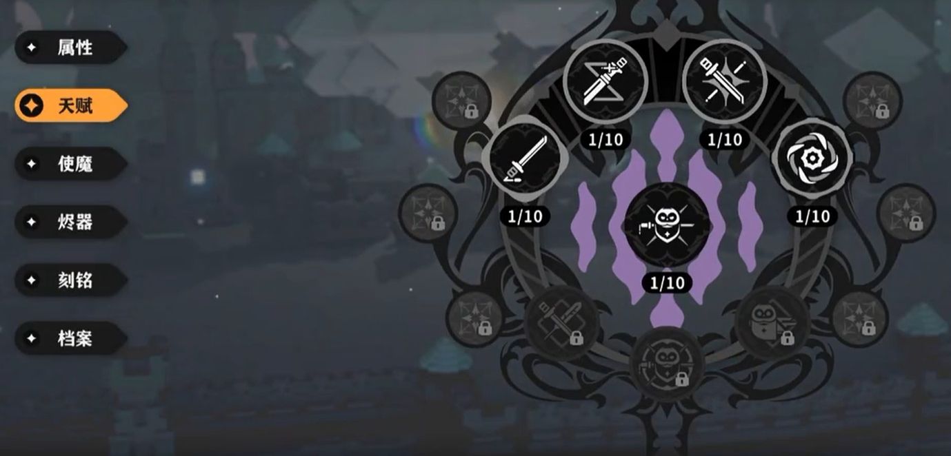 每名角色在火环里都能通过天赋来获得提升,且各角色的天赋效果都不一样,但各天赋的提升方向都较为固定。其中,最中间的天赋为核心天赋,提升它可让角色的特性能力变得更强大,中间上方四个天赋则是角色的普攻和技能天赋,可直接令他们的普攻与技能变得更强。中间下方则是角色的升阶被动,升阶后就能获得,无法主动提升它们的等级。最外圈的六个天赋则能在点亮后提升角色能力,它们为角色带来的属性方面的加成。