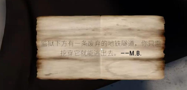 在游戏的背景故事当中,玩家由于经济诈骗,所以被警察逮捕关在了监狱当中。来到这里的第一天,你便收到了朋友写给你的小纸条。他在信上写着,你被关押的牢房下面有一条巨大的通道,只需要你将牢房下面的板砖全部挖开,你就可以成功的逃脱监狱。看到这个消息的你,马上就要开始准备起了自己的越狱计划。