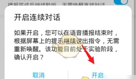 5、点击开启后,即可打开华为手机语音助手的连续对话功能。